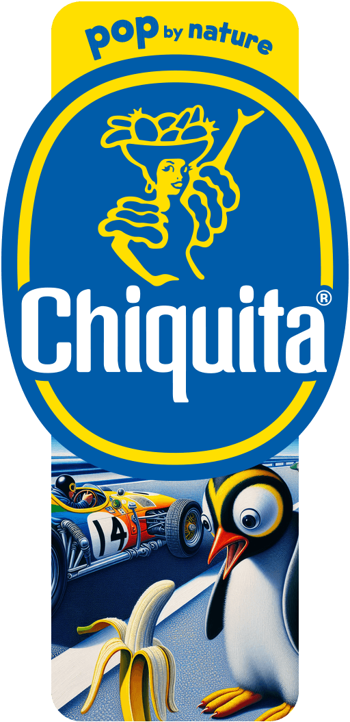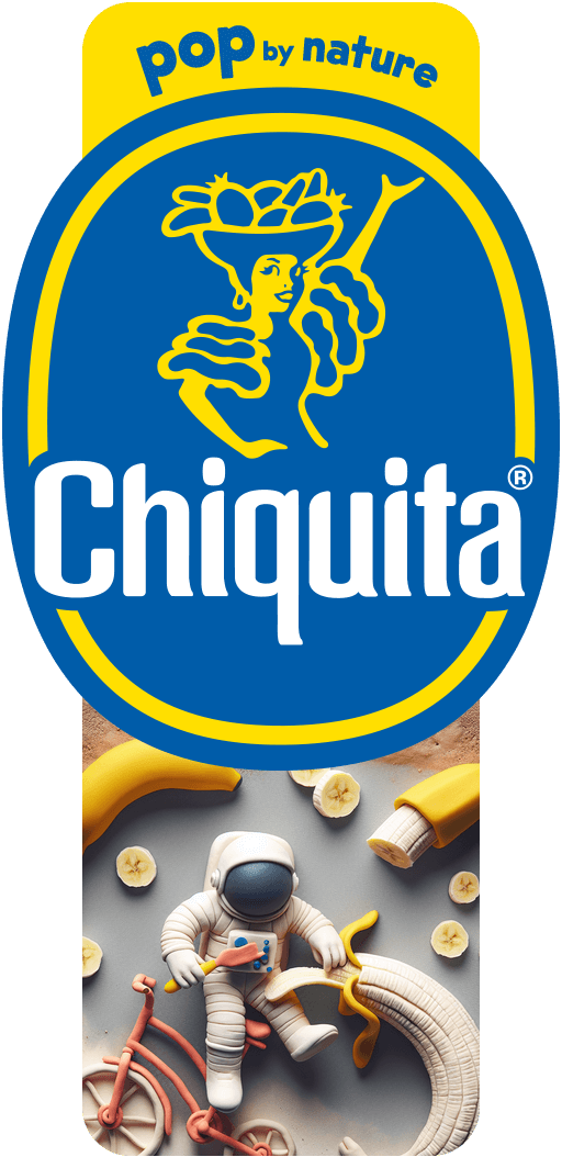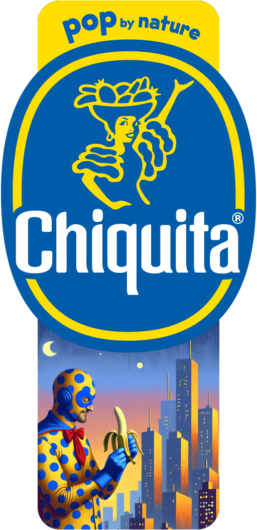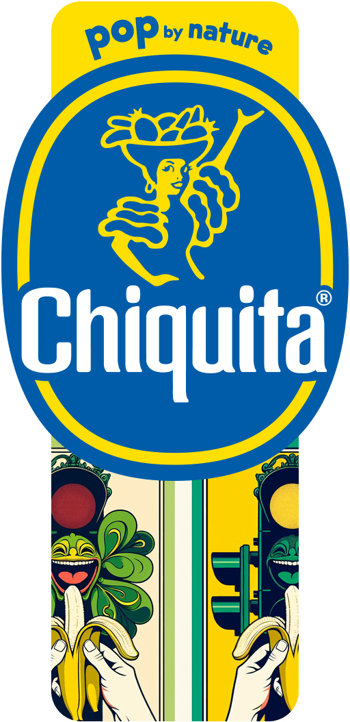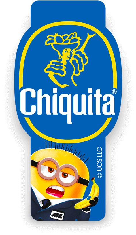 Εδώ και περισσότερα από 70 χρόνια, τα μπλε αυτοκόλλητα Chiquita λειτουργούν ως εγγύηση για το εμπορικό σήμα μας και την υψηλή ποιότητα των φρούτων μας, εκφράζουν τη χαρά, είναι εμβληματικό μας σύμβολο, καθώς και ένας τρόπος να αφηγηθούμε την ιστορία μας για τη βιωσιμότητα μέσα από την προσέγγιση Behind the Blue Sticker. Όλο τον χρόνο, πάνω στις μπανάνες μας θα βρείτε Μπλε Αυτοκόλλητα περιορισμένης έκδοσης. Τα αυτοκόλλητα αυτά σηματοδοτούν το εμπορικό σήμα μας και ταυτόχρονα έχουν ένα υπέροχο και διασκεδαστικό περιεχόμενο. Είναι εμπνευσμένα από εμβληματικά έργα καλλιτεχνών, όπως οι Romero Britto και Ricardo Cavolo.